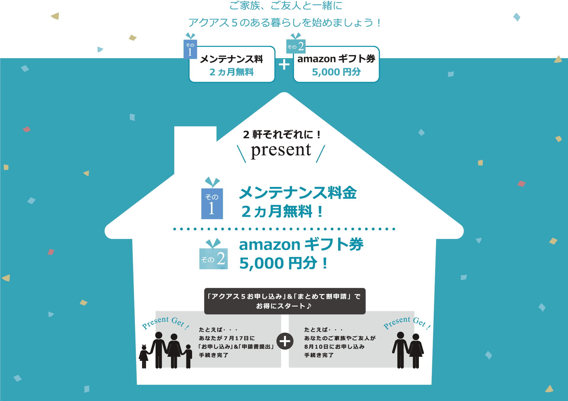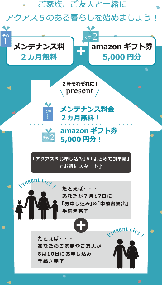 まずは、オンライン申し込みフォームまたは申込書よりオール浄水システム・アクアス5の申込手続きをお願いします。同時に、下の申請フォームよりまとめて割を申請してください。まとめて割申請後、2軒目以降のアクアス5お申し込みもオンライン申し込みまたは申込書でお手続きください(1軒目の申込書受領日から30日以内のお申し込みが必要です)。